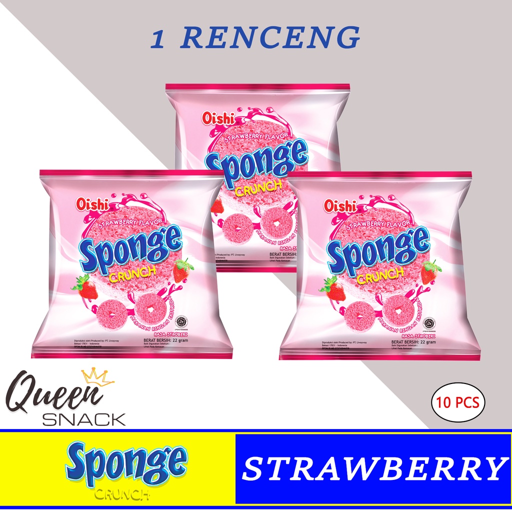Sponge Crunch Snack Oishi Rasa Strwberry Satu Renceng