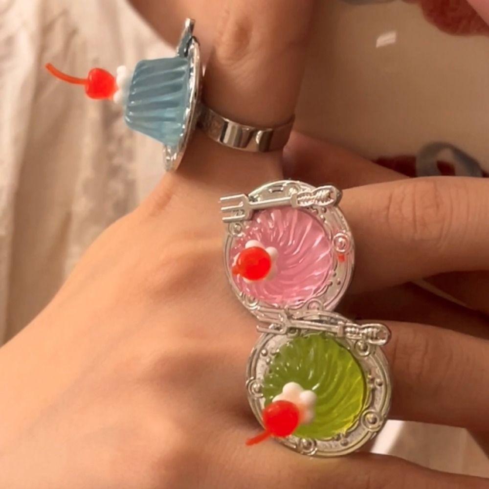 Spoon Strawberry Cake Ring Open Jelly Finger Ring Sweet Adjustable Dessert Ring Party G