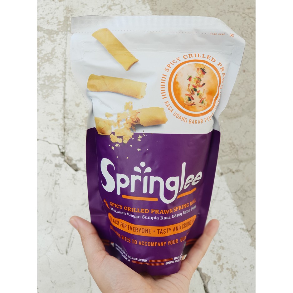 Springlee adalah makanan ringan yang dibuat dari tepung terigu dengan daging asli sehingga cocok untuk dikonsumsi kapan aja saja