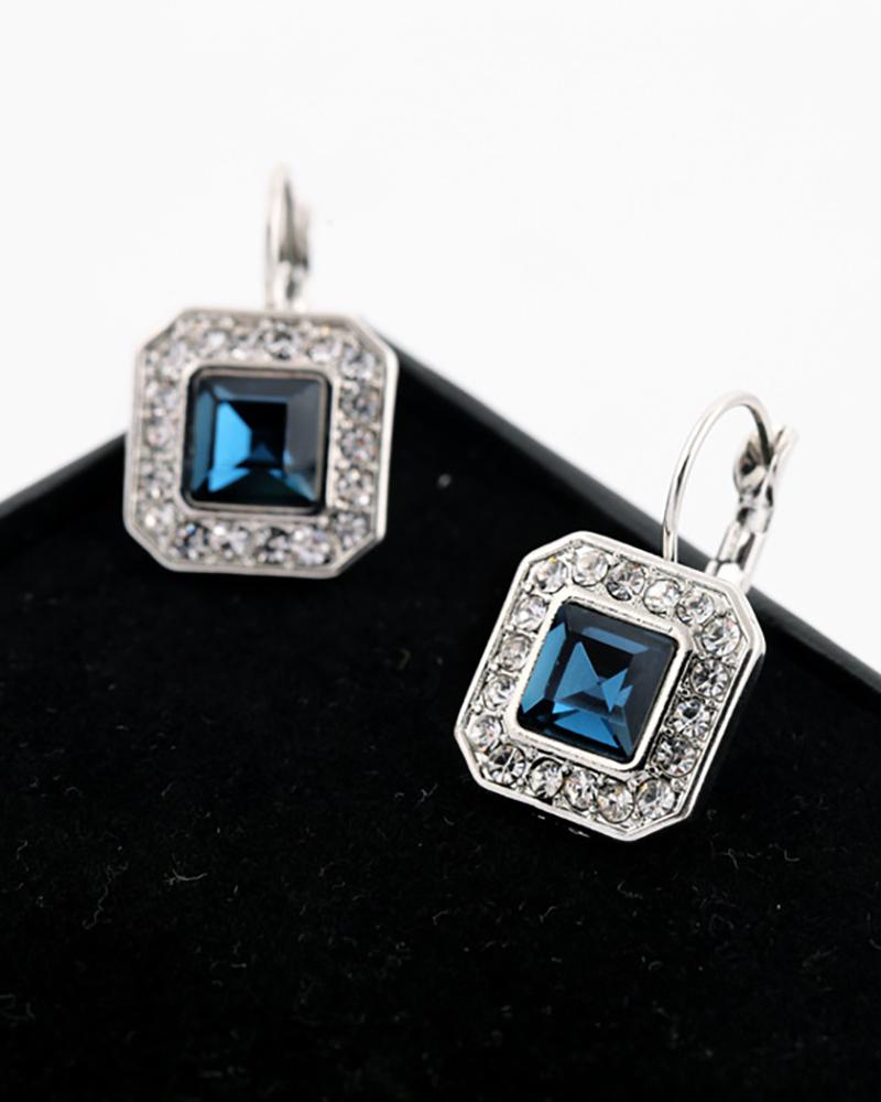 Square Blue Rhinestone Stud Earrings