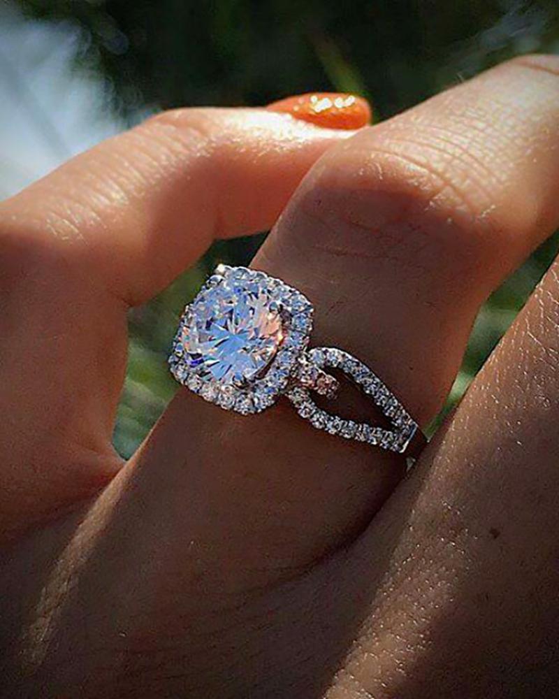 E S925 Sterling Silver Ring Blue Square Crystal Gemstone Weddings Band Rings for Women Girl Gift Adjustable Fashion Jewelry