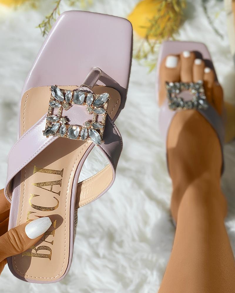Square Rhinestone Decor Flip Flops, Purple