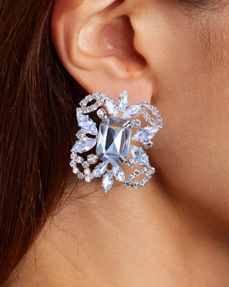 Square Rhinestone Earrings, Silver