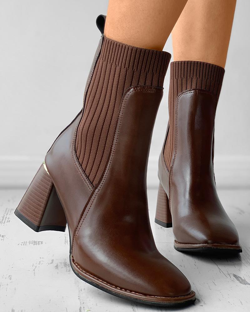 Square Toe Chunky Sock Ankle Boots, Brown