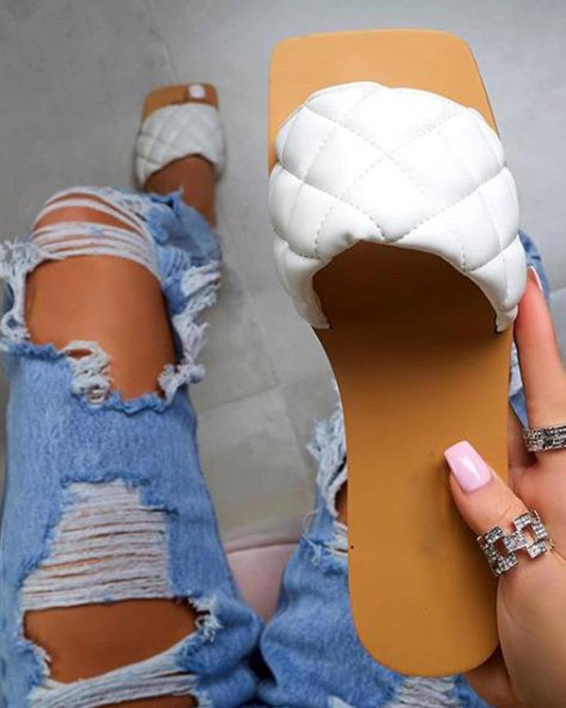 Square Toe Slide Sandals, White