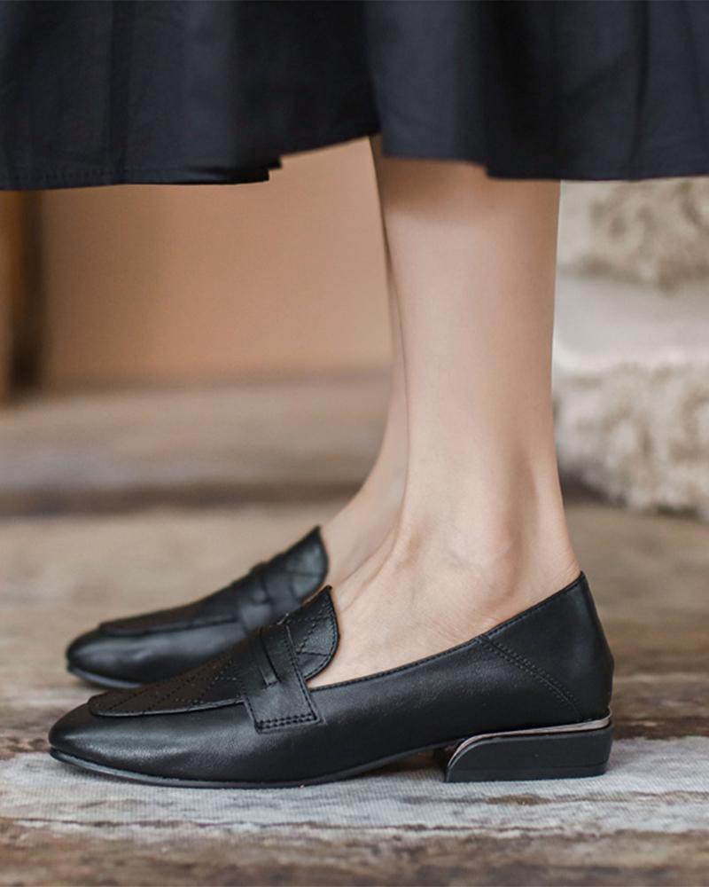 Square-toe Embroidered PU Leather Flat Loafers, Black