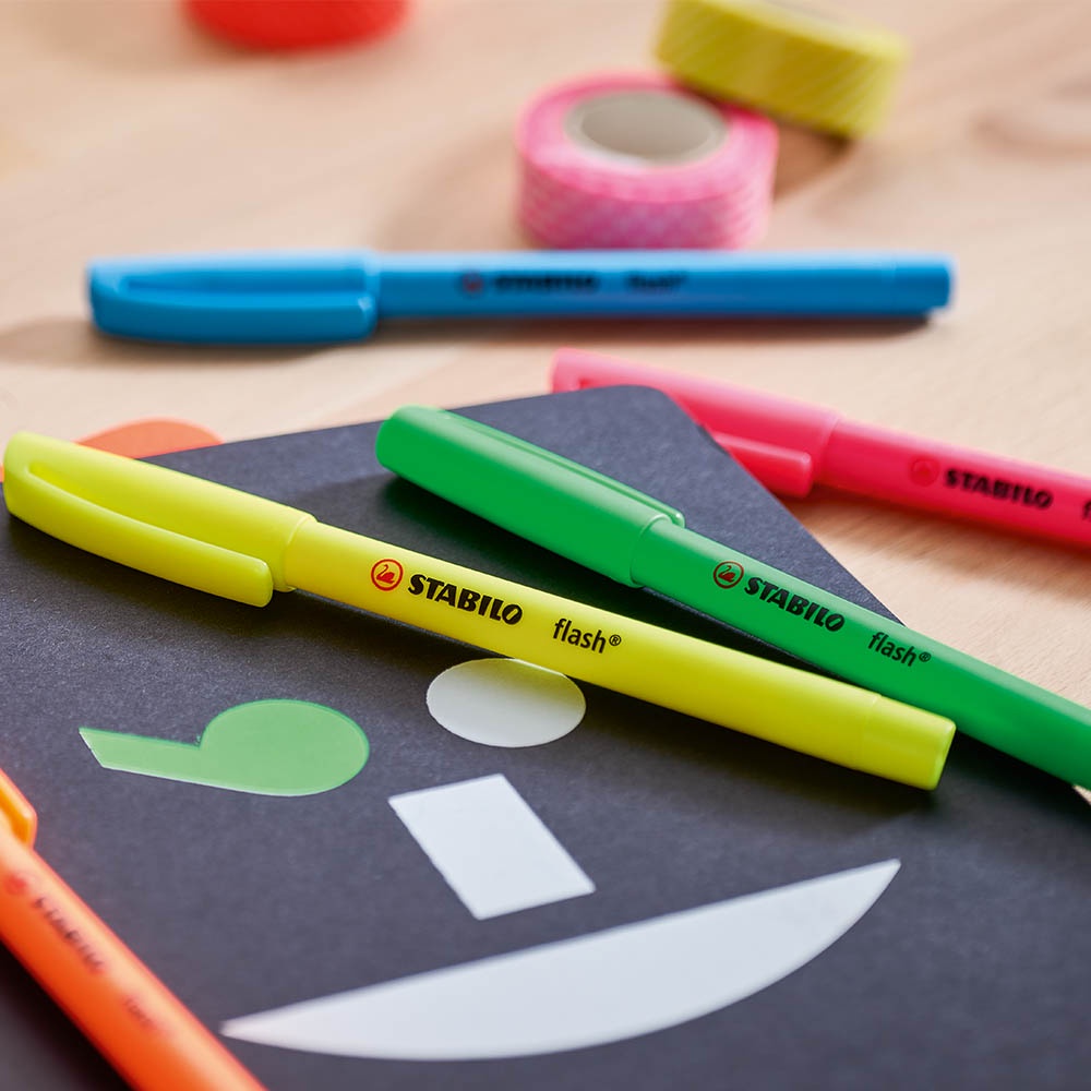 Jadikan catatanmu lebih berwarna dan menyenangkan dengan STABILO Flash, salah satu highlighter yang paling populer di Eropa!