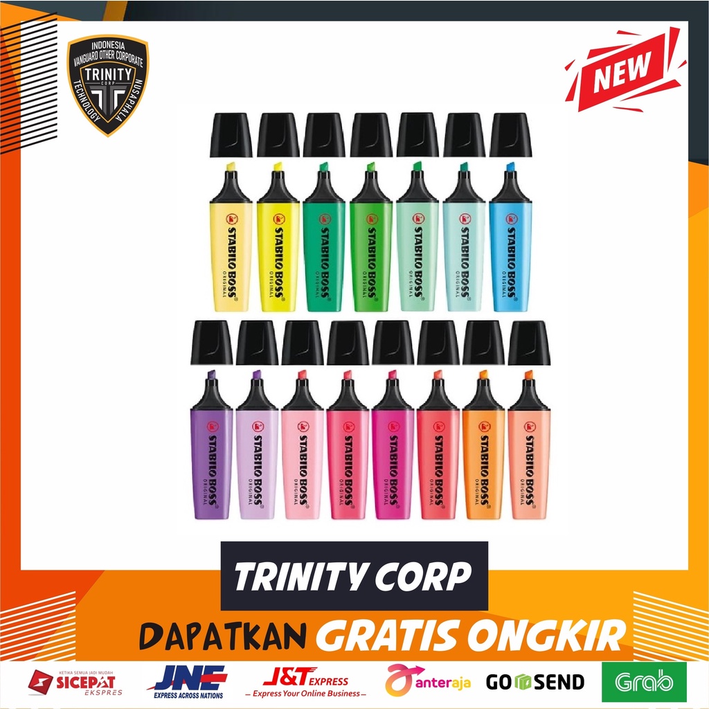 - STABILO BOSS Original dilengkapi teknologi Anti-Dry-Out, produk tidak kering walau dibiarkan terbuka tanpa penutup selama 4 jam. Sehingga pada waktu belajar tidak usah repot membuka-tutup highlighter-mu!