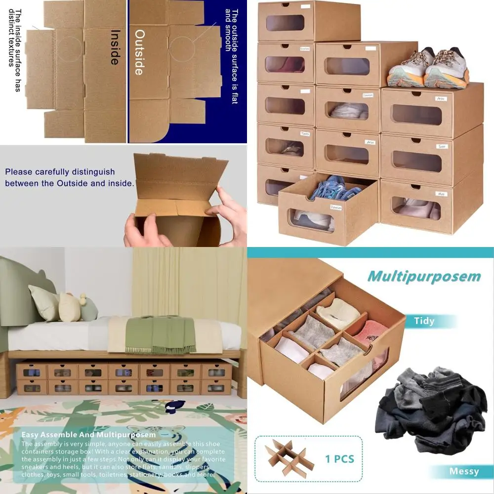 Stackable Waterproof Shoe Boxes with Transparent Window and Label for Sneaker Storage (13.2x8.3x5.1)