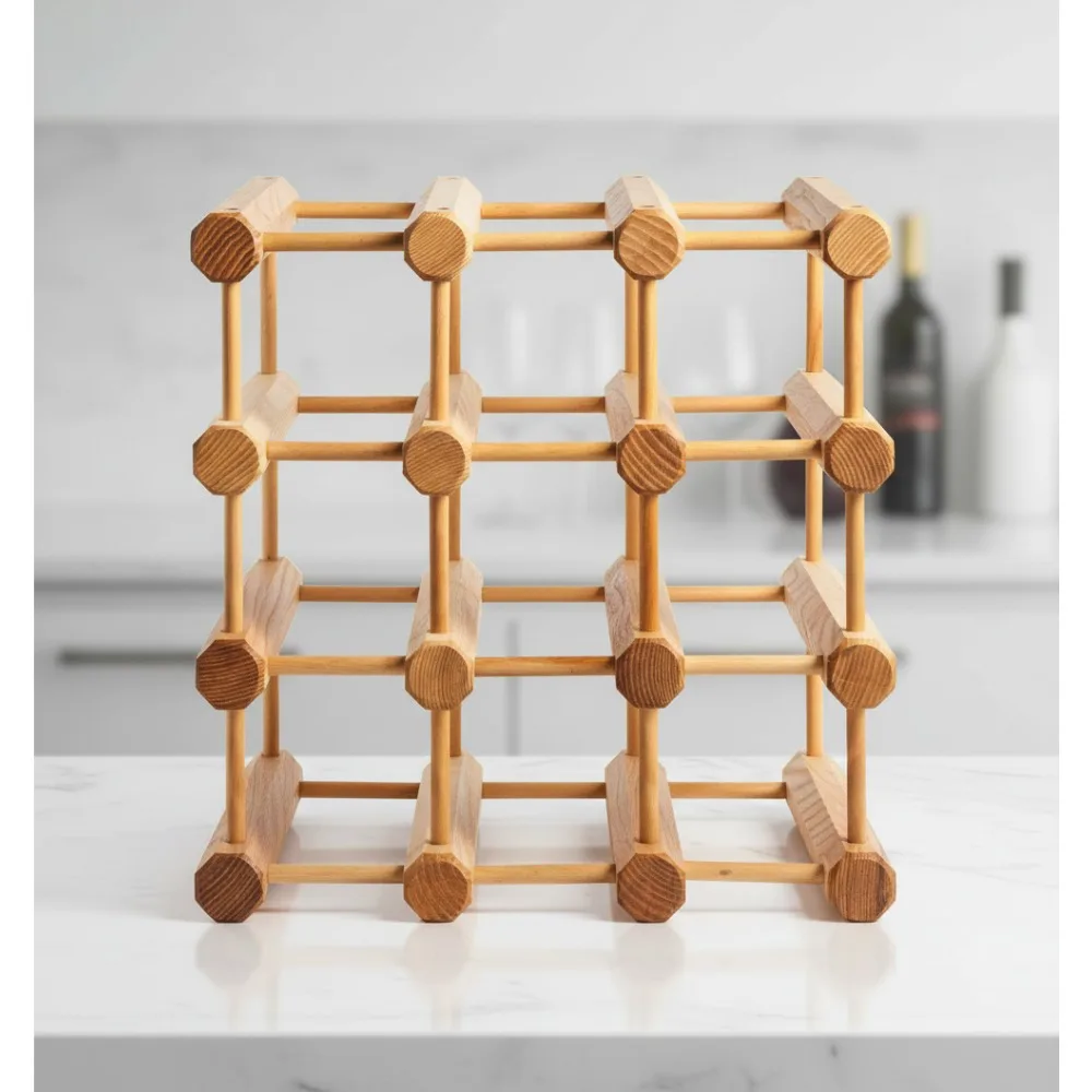 Stackable Wood Wine Rack Holder, 12 Bottle Capacity, Modular Design for Home Bar Storage