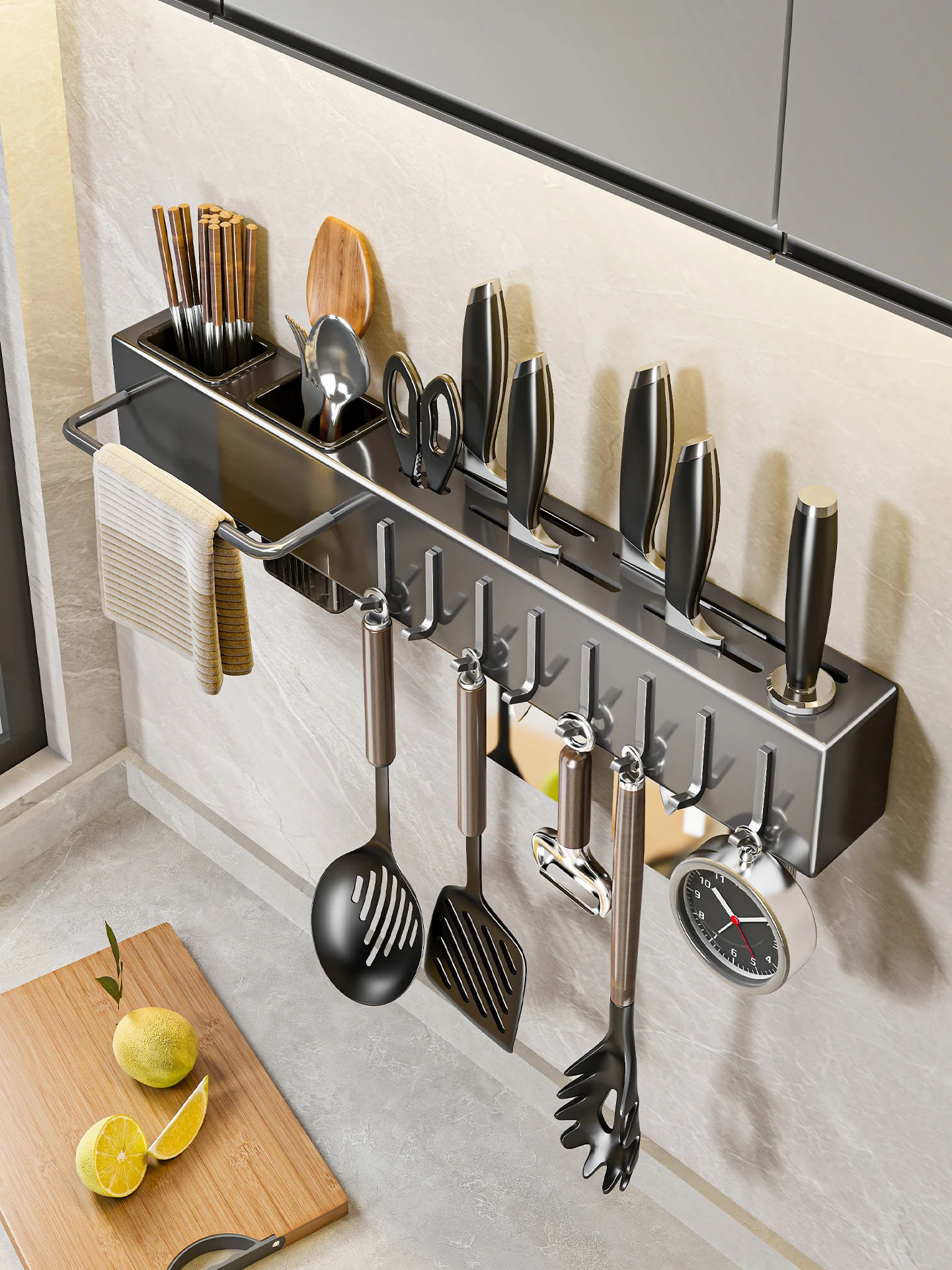 Stainl Steel Kitchen Knife Utensil Storage Ra Multi-Function No-Punching Knife Holder Wall-Mounted Inteated Chopstis...