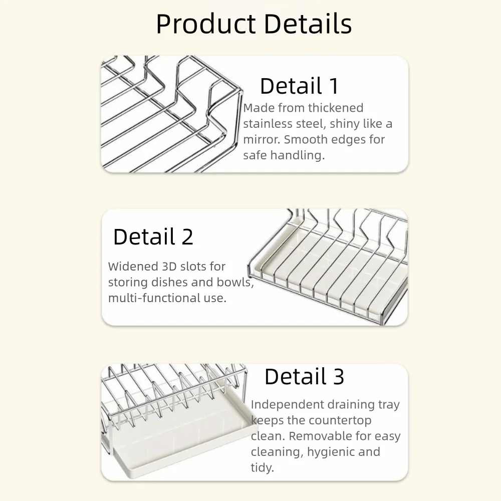 Stainless Steel Dish Drying Rack Space Saving Rust-Proof Dish Storage Rack with Drain Tray Tableware Storage Stand Kitchen
