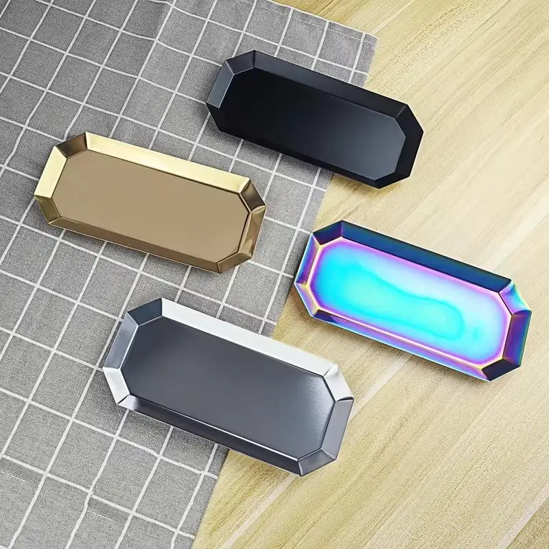Stainless Steel Hexagonal Rhombus Shape Cosmetics Storage Table Jewelry Tray Multi-Functional Home Dining Tray Containers