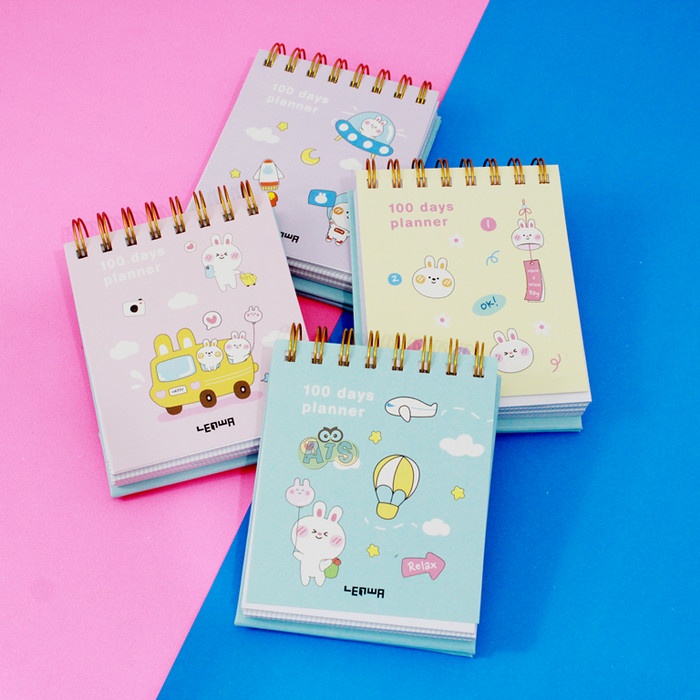Planner 100 hari ini terbuat dari sampul karton tebal, kertas tebal. kertas ber, motif cute. Sangat cocok untuk mencatat perencanaan harianmu selama 100 hari.