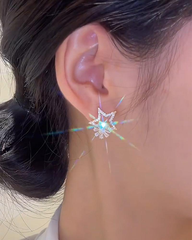 Star & Snowflake Pattern Rhinestone Earrings, Silver