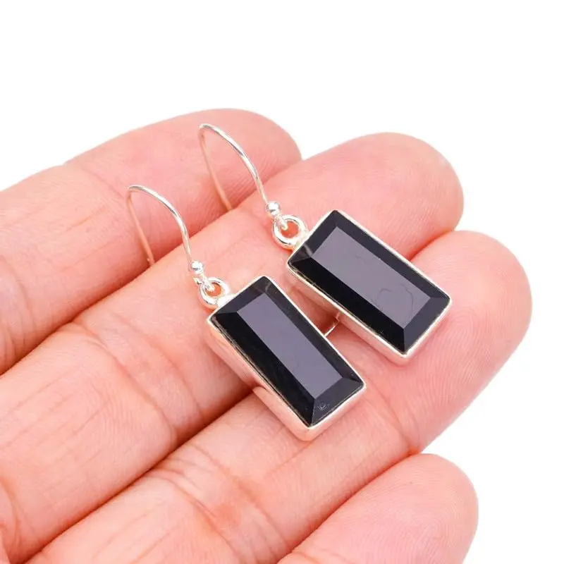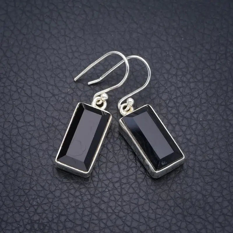 StarGems®Серьги ручной работы из серебра 1,5 пробы с натуральным черным ониксом F6081