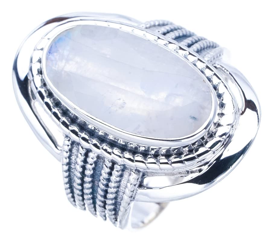 StarGems® Natural Moonstone Handmade 925 Sterling Silver Ring 7.25 F0733