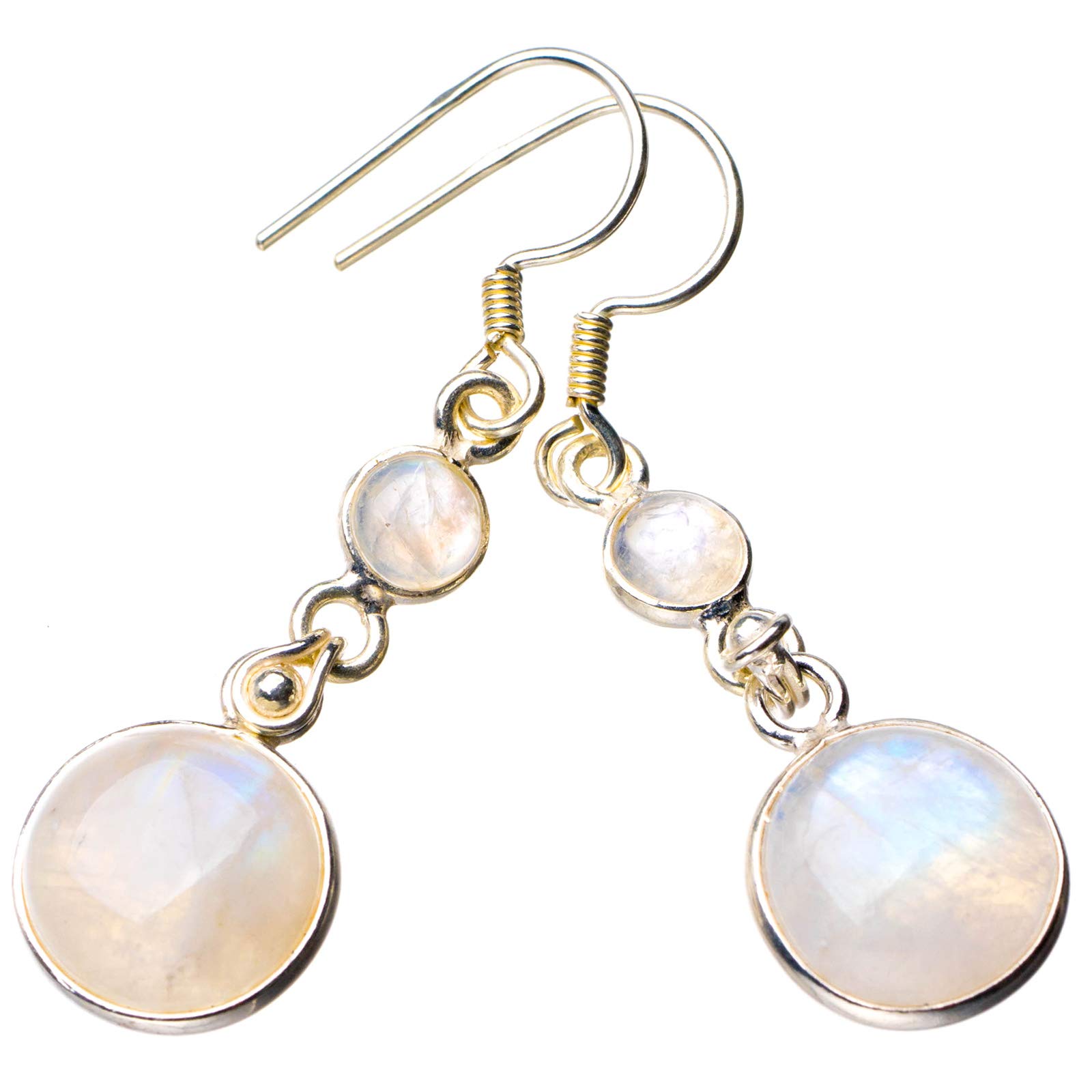 StarGems® Natural Rainbow Moonstone Handmade 925 Sterling Silver Earrings 1.75 D7293
