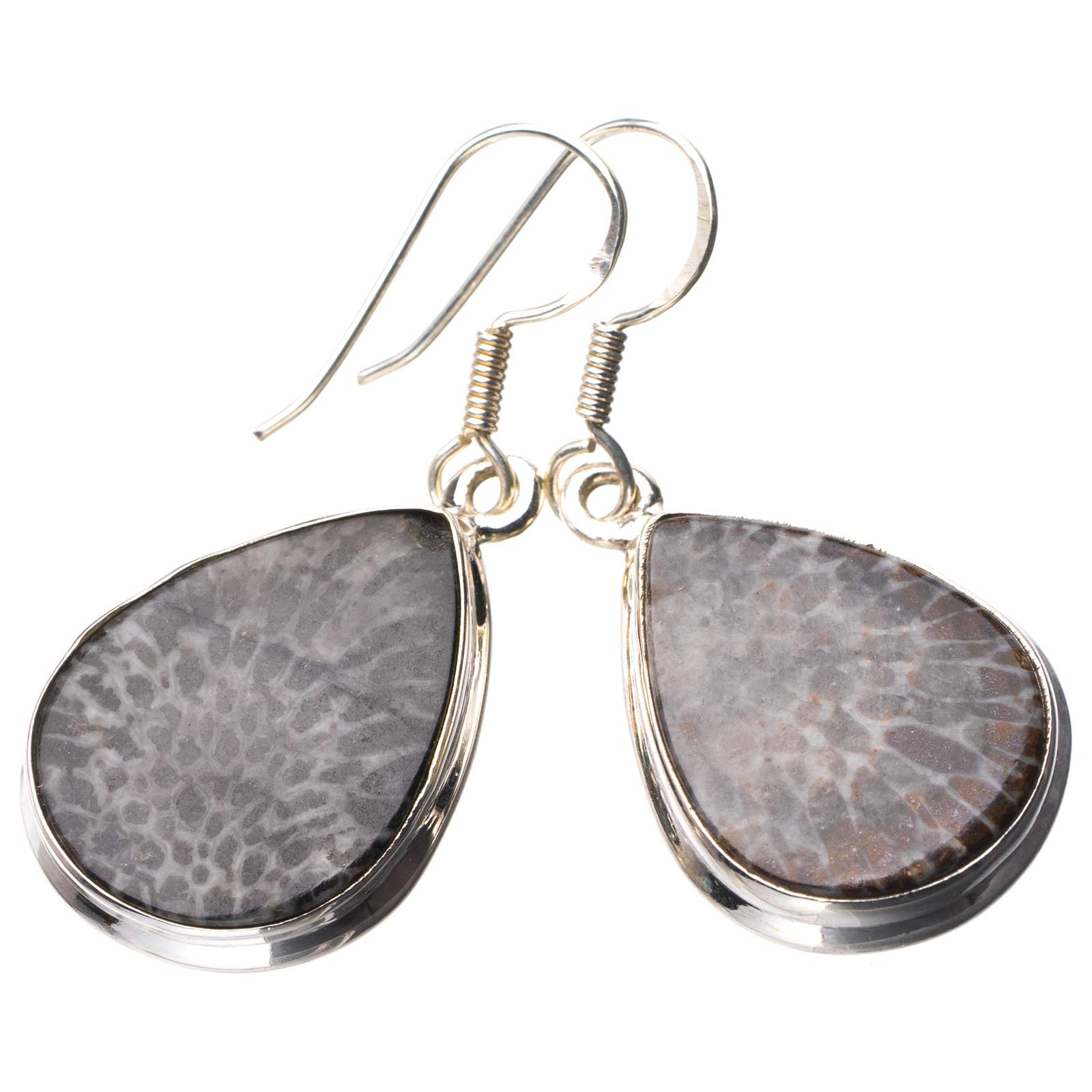 StarGems® Natural Stingray Coral Handmade 925 Sterling Silver Earrings 1.5 E0639