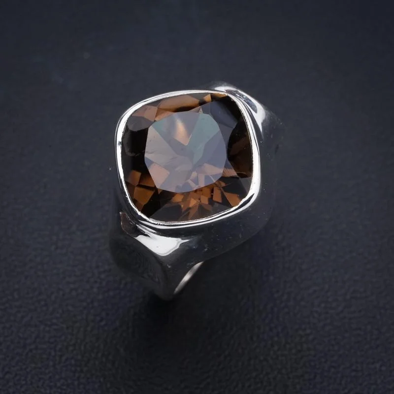 StarGems природный дымчатый кварц ручной работы 925 пробы Серебряное кольцо 5,25 E9193