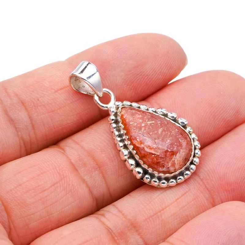 StarGems Sunstone ручной работы 925 пробы серебряный кулон 1,25 "F4178