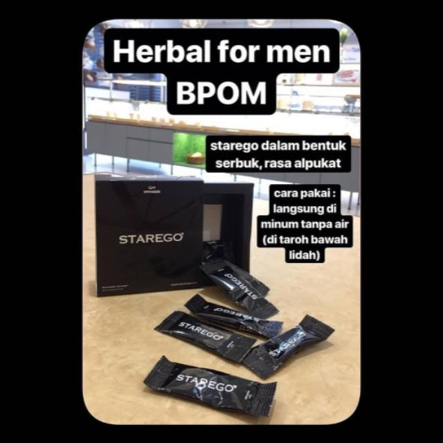 Starego merupakan minuman herbal dengan rasa buah alpukat yang baik dan menyehatkan untuk dikonsumsi pria maupun wanita. Starego dibuat dengan bahan dasar berkualitas tinggi seperti White Ginseng, Saw Palmetto, Cordyceps serta bahan aktif berkualitas lainnya yang berkhasiat untuk menjaga kesehatan dan meningkatkan kebugaran serta stamina bagi pria maupun wanita. Dan juga Starego baik untuk membantu menjaga keharmonisan hubungan rumah tangga untuk anda dan pasangan anda.