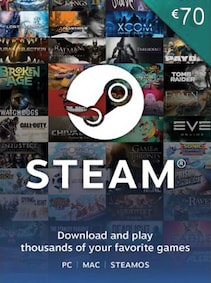 A Steam Gift Card 70 EUR is a digital card that can be used to add balance to a user's Steam Wallet. It allows user to purchase games, in-game items, and other items on the Steam platform. The card is available for online instant delivery and does not expire, giving the user flexibility in how they use the funds. It can be easily redeemed by entering the code into the Steam client or on the Steam website.Steam Gift Card is an excellent offer for those who want to buy video games on Steam but don't want to use a credit card or other payment methods users can think about. The voucher is a great way to enjoy the vast selection of video games on Steam, and it is a cheap and convenient tool to add funds to your Steam Wallet. This makes the card a considerable gift idea for friends and family. The credit available on the card can be spent on all games and items from the Steam market.Key featuresEase of useUnlimited selection of games and in-game featuresPerfect for personal use and as a gift option