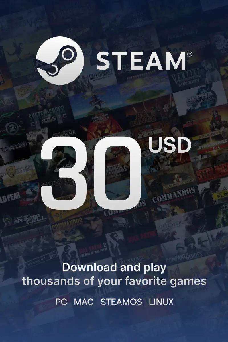 Steam Wallet $30 USD Gift Card (US) - Digital Code