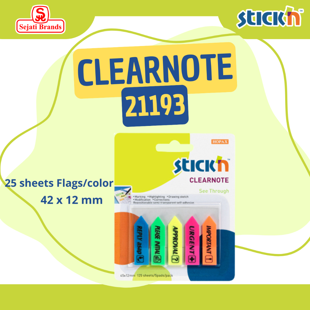 Stick'n Clearnote Assorted Sign 21193 Sticky Note