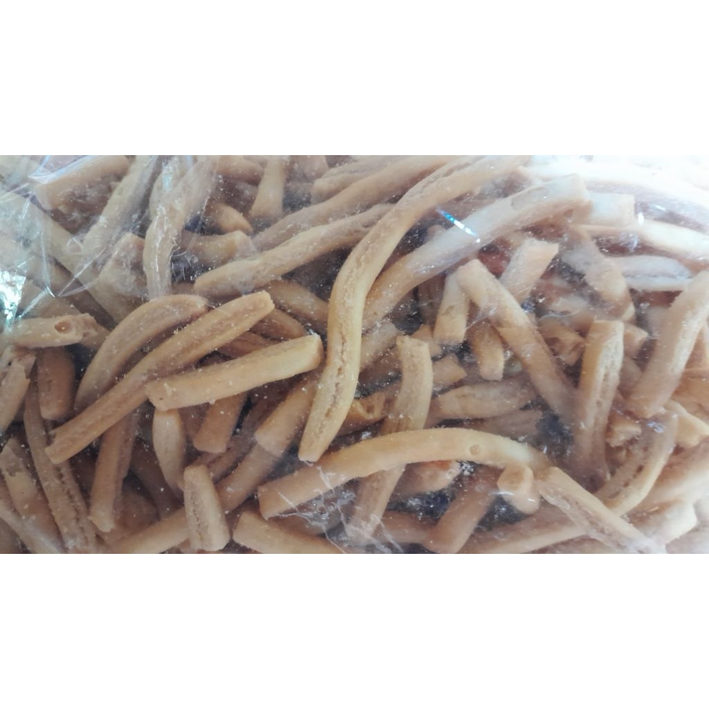 Bentuk: Panjang-panjang seperti stik, dengan ukuran yang bervariasi tergantung cara pemotongan.