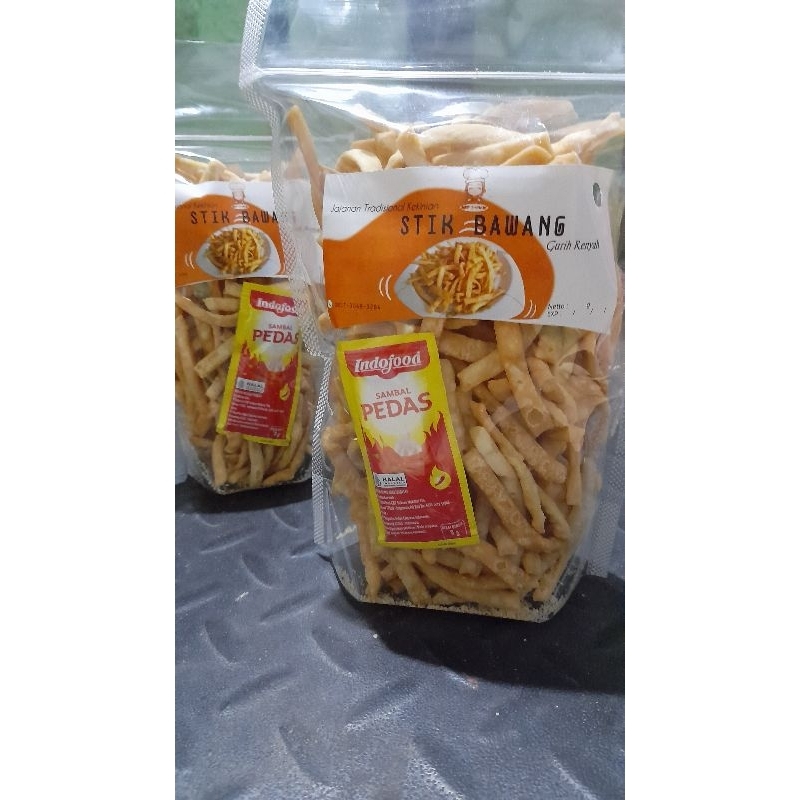 Stick Bawang berbahan dasar tepung terigu, gurih, renyah. Cocok untuk temen nyemil keseharianmu.
