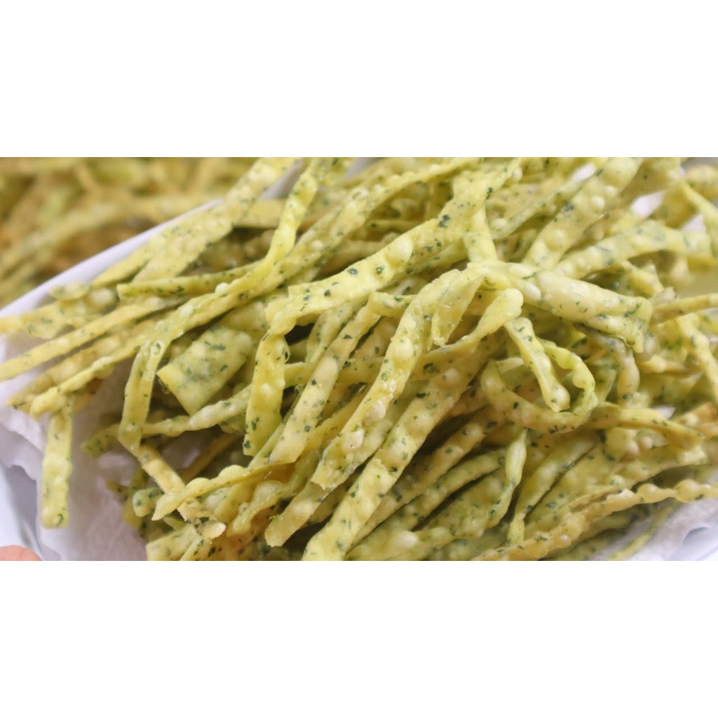 stick bayam yang terbuat dari daun bayam asli, yang mempunyai rasa renyah dan gurih