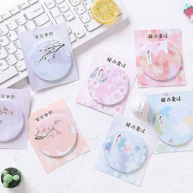Stick note bentuk bulat motif sakura ini terbuat dari bahan kertas, motif bagus, bahan berkualitas. Bisa ditempel.