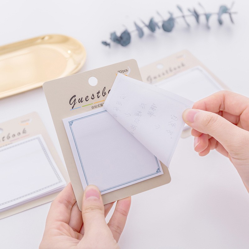 Kami hadirkan Stick Note Edisi Guest Book yang lucu banget! Warnanya cerah, isinya 30 lembar, bahannya dari kertas, ukurannya pas untuk anda, bisa dibawa-bawa!