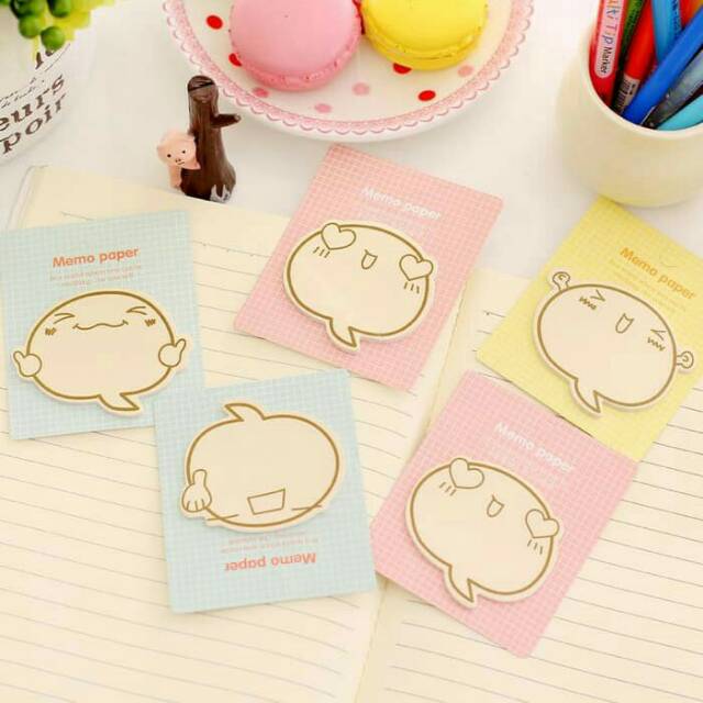Stick Note/Memo Paper Emoticon lucu loh :) dilengkapi dengan lem perekat yang kuat, ruang untuk menulis juga cukup besar. Ukuran Stick note sekitar 5x5 cm.