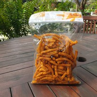 Suka dengan stick bawang yang biasa jadi cemilan? Nah yang ini disiram lagi dengan saus gula pedas manis campuran udang kering.