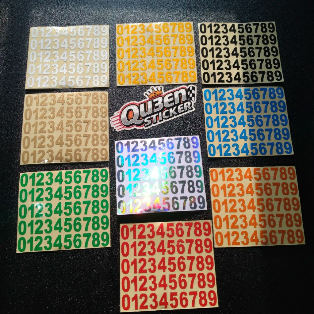 Harga untuk 1 lembar. Paket isi 5 baris stiker angka 0-9. Ukuran angka 1,1