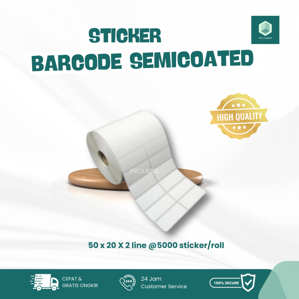 Sticker Barcode 50x20 2 Baris(2 Line) Bahan Semicoated 5000PCS