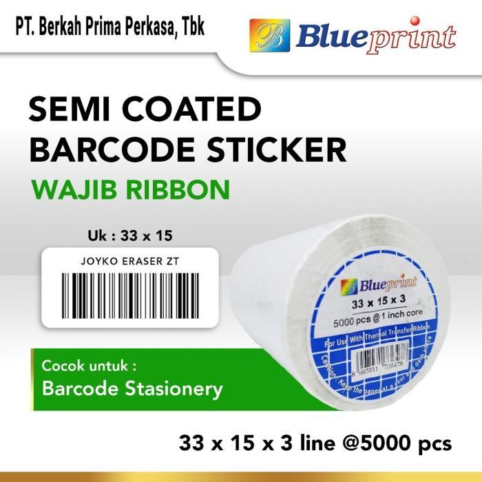 Sticker label Barcode 33x15mm 3 Line Semi Coated BLUEPRINT Core 1" isi 5000 Pcs