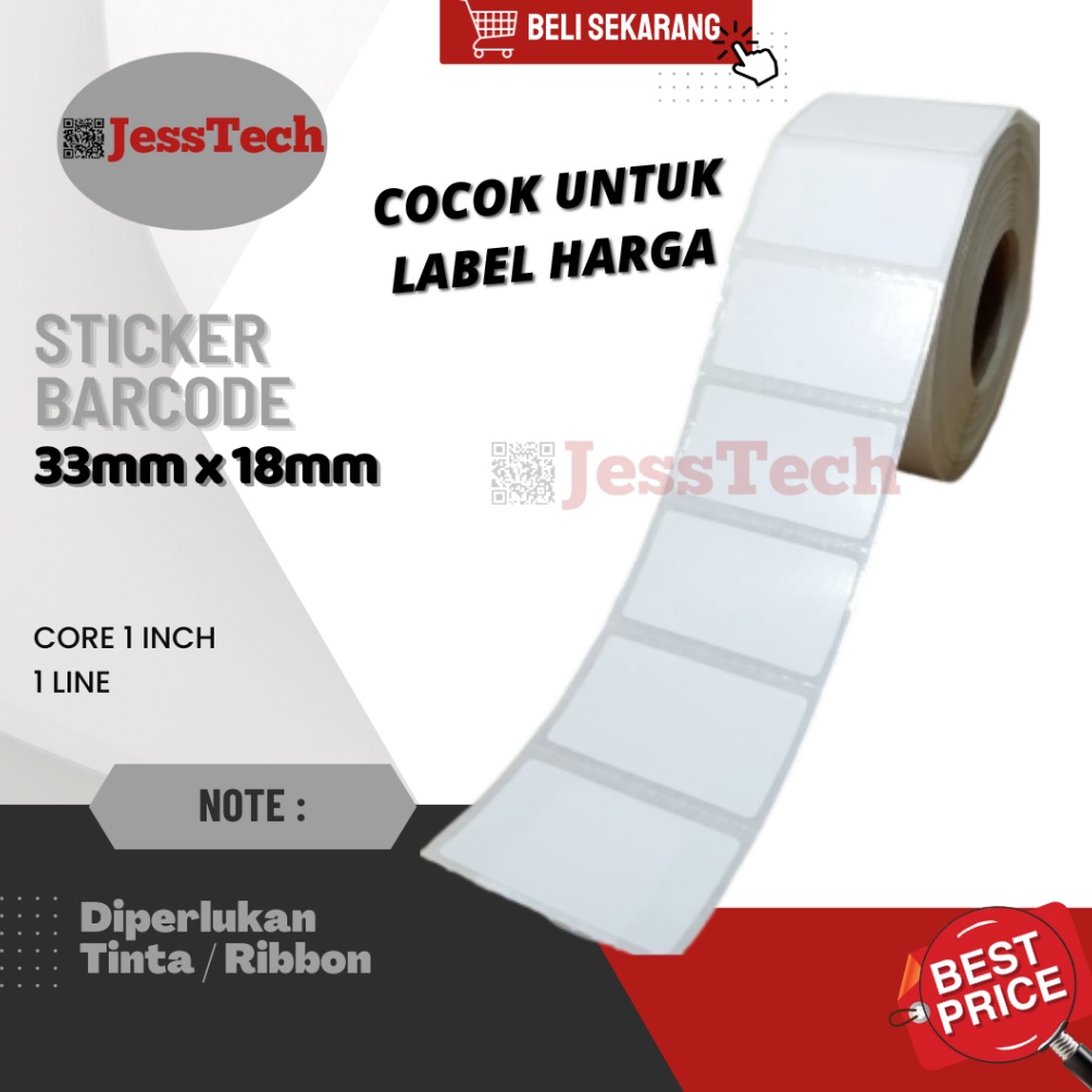 Barang Baru Diperlukan Ribbon !!! STICKER LABEL 33MM X 18MM varian isi 1000 dan isi 2000 Cocok LABELING BARANG, LABELING HARGA, labeling barang - barang Inventory, buku perpustakaan lebar 33mm tinggi 18mm isi 1.000 isi 2.000 Gap 3MM cornes 1 inch Harga yang tertera per 1 roll sticker Bisa digunakan untuk printer : ZEBRA ZD230 ZEBRA ZD 220 ZEBRA GC 420 ZEBRA CK 420T SATO CG 408TT POSTEK C-168 HONEYWELL PC42T ARGOX OS 214 ARGOX CP 2140 XPRINTER XPTT42B WINCODE C342C GODEX G-500 TSC TTP 244 PRO TSC 542 TSC TE 200 TSC TE 300 NB : 1. Penting untuk memahami untuk pembeli memahami dang mengerti JUDUL dan DESKRIPSI produk terlebih dahulu sebelum klik beli. 2. Bila ada yang kurang di mengerti pembeli bisa hubungi CS kami 3. Untuk kurir di toko kami kahanya memakai JNE saja. 4. Untuk pengiriman menggunakan jasa kirim selain JNE, semisal ingin memakai gosend, go jek dll. pembeli bisa tanyakan ke CS kami, kami akan siap membatu yang terbaik untuk pengiriman barang pesanan pembeli sesuai keinginan pembeli. 5. Barang sebelum dikirim sudah kami pastikan barang baru,berfungsi sesuai kegunaan dan tidak ada cacat apapun. 6. Apabila ada kerusakan barang akibat pengiriman itu bukan tanggung jawab kami karena bila barang sudah ada di pengiriman kami sudah tidak bisa memantau lagi. tetapi kami akan mengusahakan pengiriman aman sampai di tangan pembeli. 7. Setelah KLIK BELI kami anggap pembeli sudah memahami dan mengerti apa yang sudah kami jelaskan di atas, KLIK BELI = SETUJU, NO COMPLAIN NO RETUR ~~~~~~>>>> Kepuasan pelanggan adalah tujuan utama kami >>>>> Terima Kasih Atas Kunjungan Anda