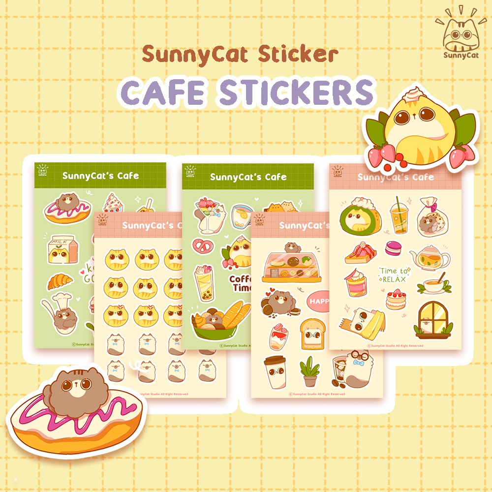 Stiker bertemakan cafe dengan kucing-kucing SunnyCat lucu yang cocok untuk di koleksi!