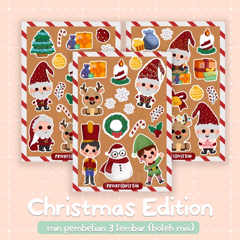 Stiker natal ini siap untuk dimasukkan ke keranjang! stickernya juga tahan air dan bisa ditempel di mana aja loh. Jadi, ini bisa jadi tambahan dekorasi natal di botolmu, kado, surat dll.