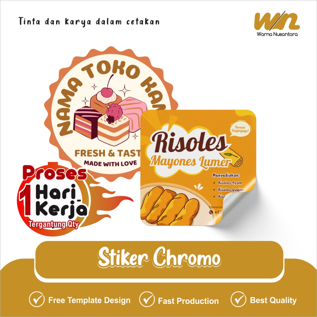 Sticker Custom Chromo / Hvs (Cetak + Cut). Model Bulat, Persegi & Sesuai Pola (Custom)