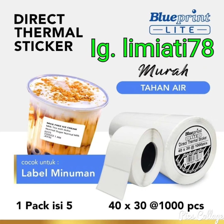 Sticker Direct BLUEPRINT LITE Thermal Sticker Label Cup Resi 40x30 mm Stiker