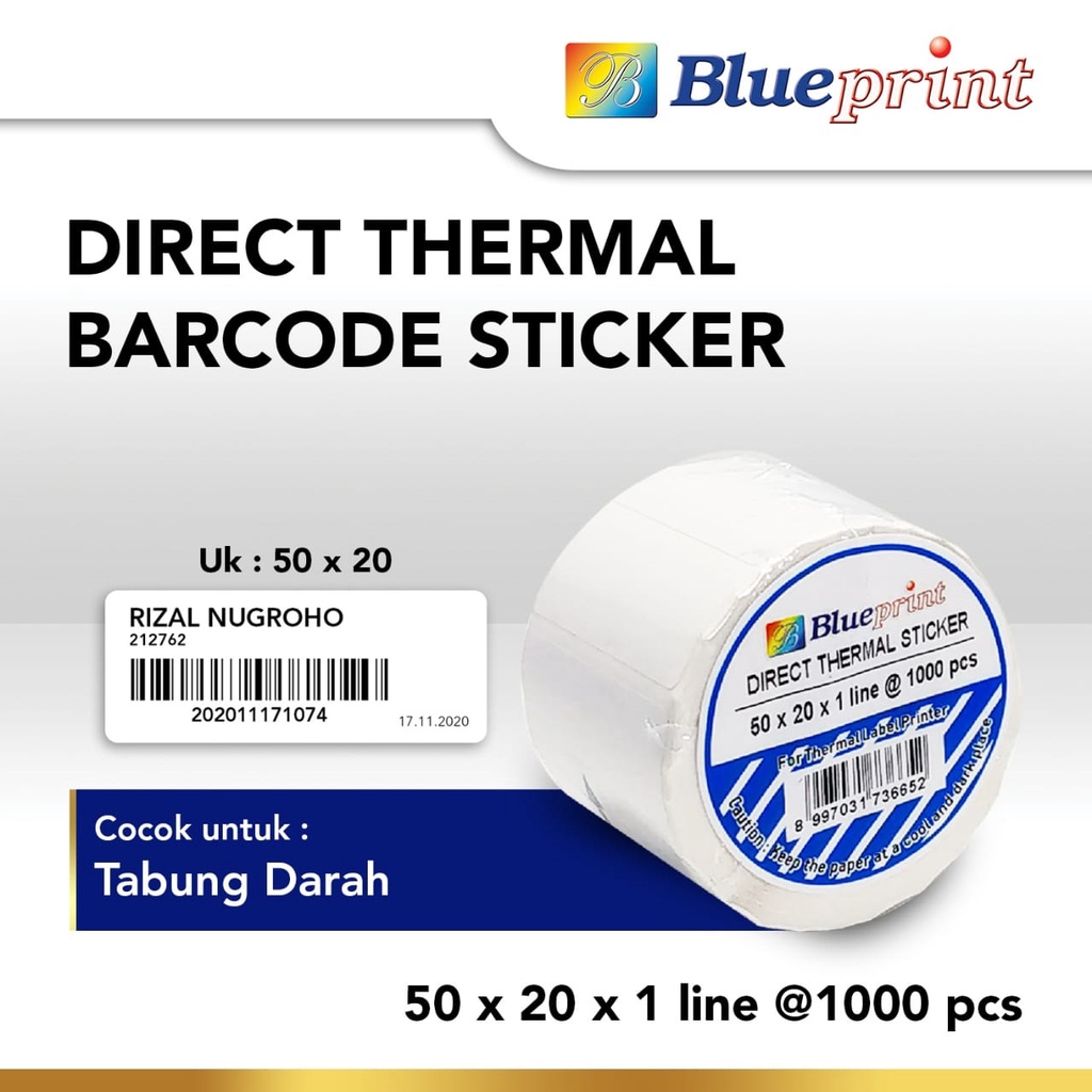 Sticker Direct Thermal BLUEPRINT 50x20 mm x1 Line Isi 1000 Stiker Label ( Paket 2 ROLL )