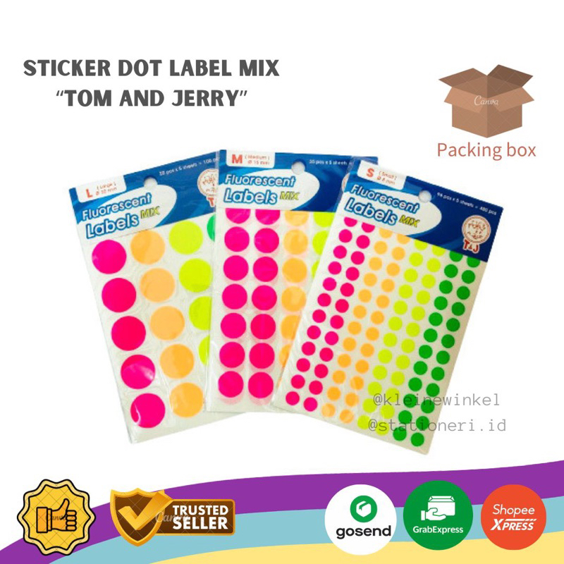 Sticker Dot Label Fluorescent Tom & Jerry Mix Colour Warna Warni