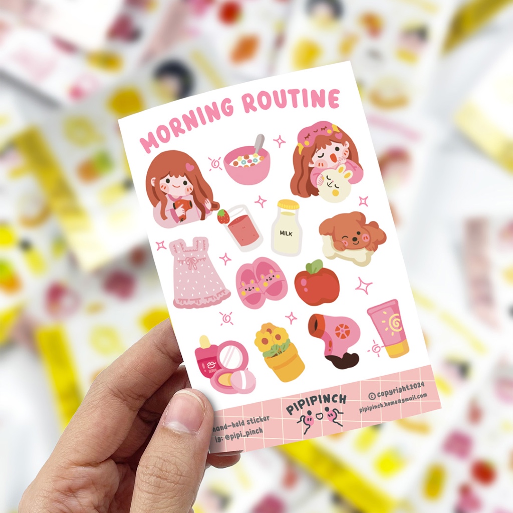 Sticker Handheld dan Diecut Tema Morning Routine-Pipipinch