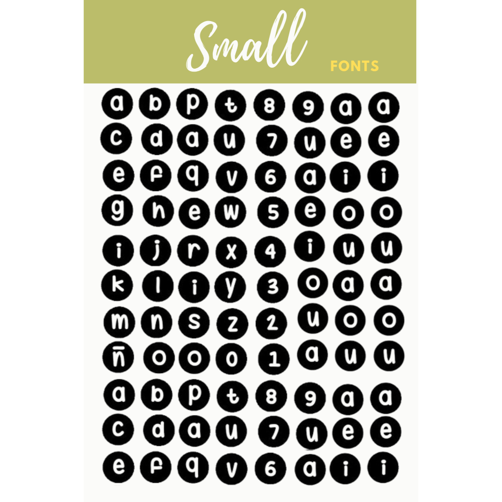 Sticker Alphabet dengan isi keseluruhannya huruf kecil yg di semat dalam bentuk lingkaran untuk memudahkan