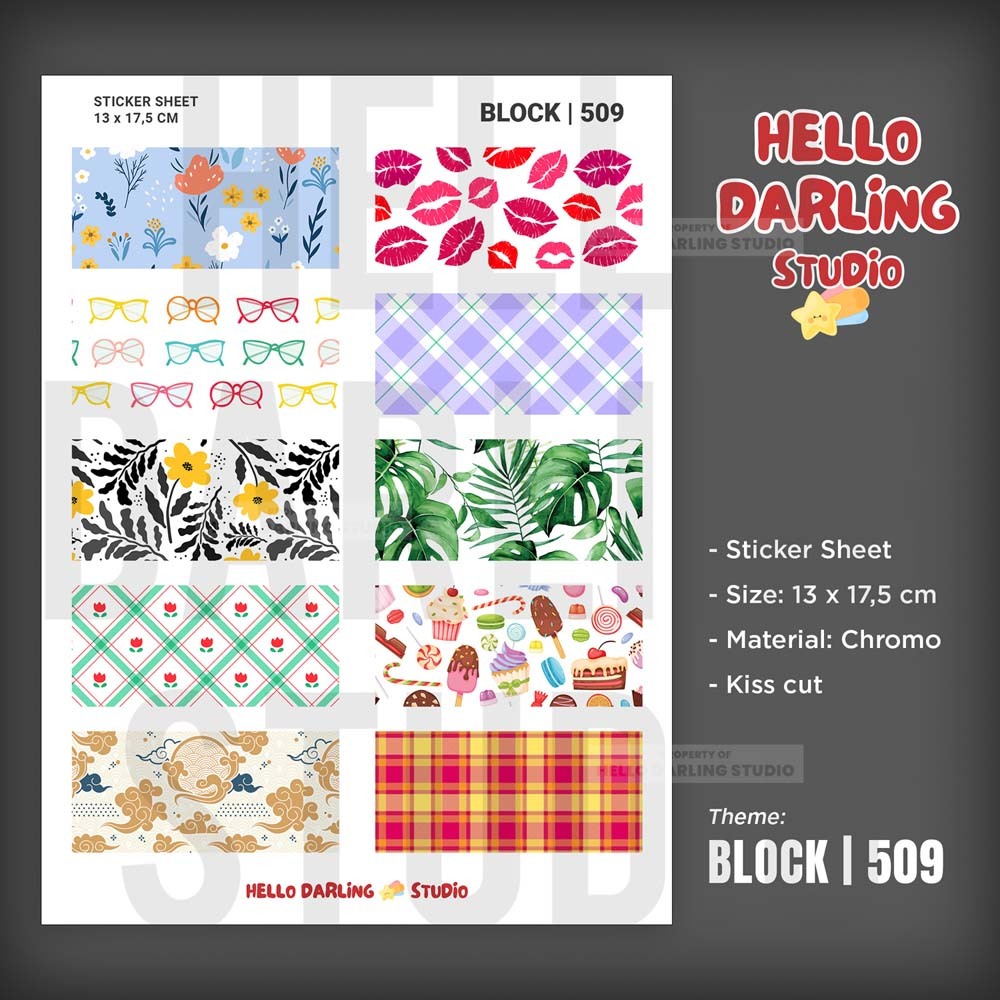 Sticker Journal Pattern Block. Sticker Sheet Journaling Scrapbook Deco. Kiss Cut. Block 509.
