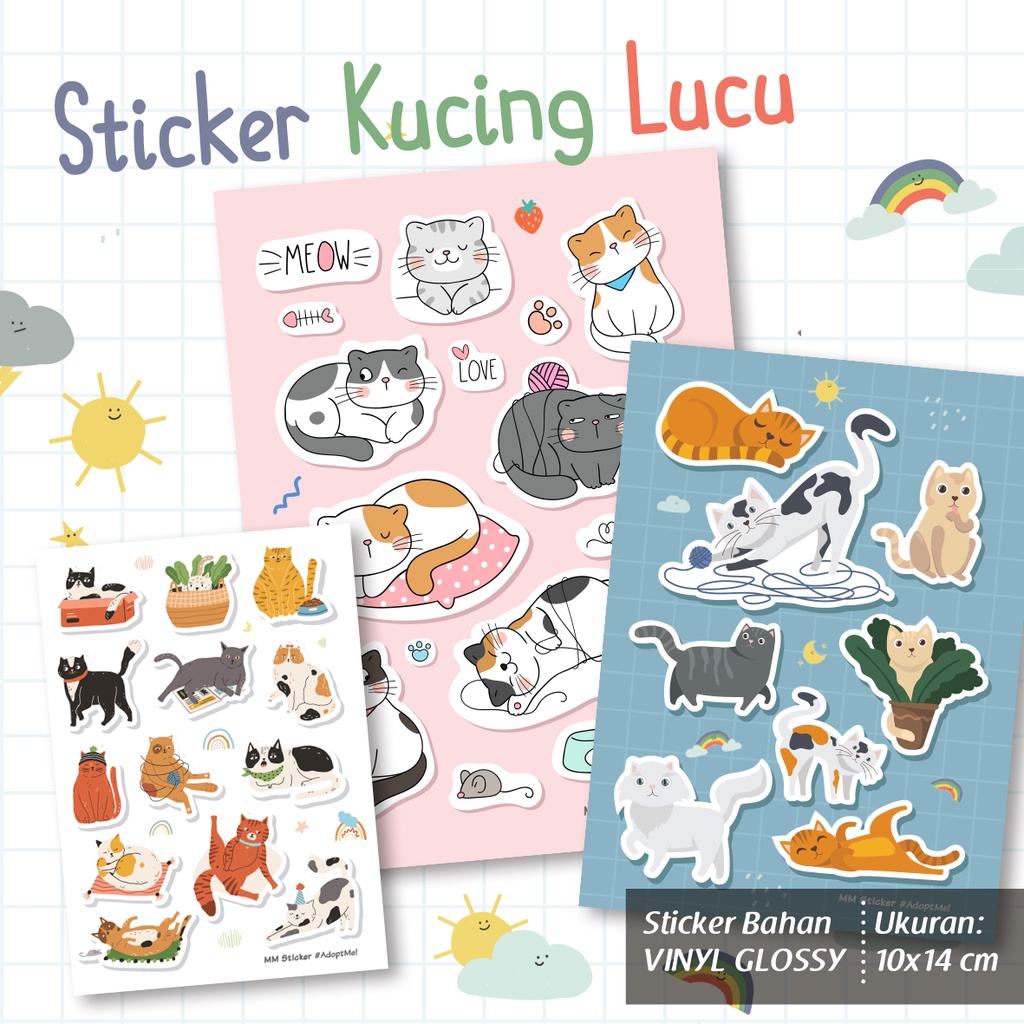 Sticker lucu bergambar aneka kucing yang menggemaskan! Cocok untuk ditempel di notes/ HP/ laptop, dll